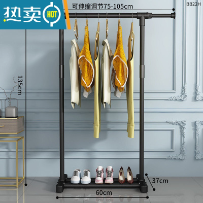 敬平毛巾架子落地晾架子免打孔挂网红置物架收纳架杆临时放衣服器 105cm-黑色[可伸缩款]-中晾晒架