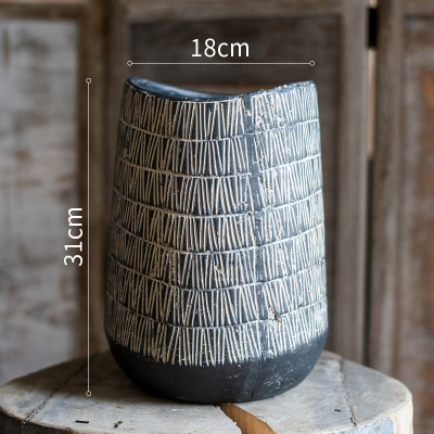美帮汇灰色系手工粗陶罐花器花瓶花盆红陶黑陶土陶做旧仿古古董 手工粗陶(F款) 大