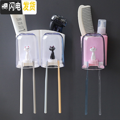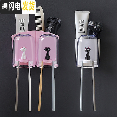三维工匠壁挂天鹅牙刷置物架卫生间免打孔透明洗漱杯架四口之家牙刷架套装 3人:白盒猫咪双杯+粉盒猫咪单杯