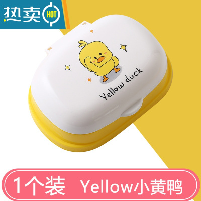 敬平肥皂盒家用可爱卡通儿童香皂收纳盒带盖旅行学生宿舍台面翻盖沥水 Yellow duck[小黄鸭]