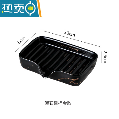 敬平肥皂碟肥皂盒北欧香皂盒轻奢风陶瓷家用皂碟沥水浴室卫生间创意 黑色描金[漏嘴]方形皂碟