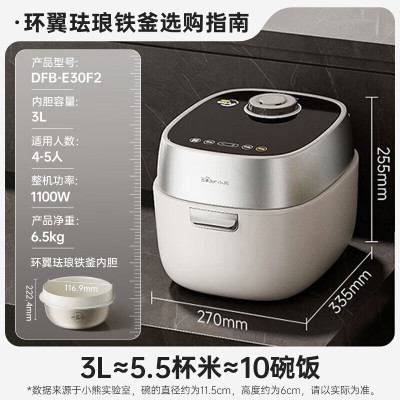 小熊(Bear)铁铁煲 电饭煲 小型2-3人电饭锅 环翼珐琅铁釜变压远红外IH加热微压柴火饭3升 DFB-E30F2