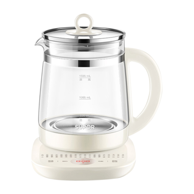 苏泊尔(SUPOR)养生壶多功能1.5L智能家用全自动按键式电热烧水壶高硼硅玻璃花茶养生壶SW-15YJ33B