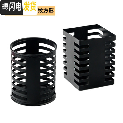 三维工匠金属笔筒创意时尚办公室摆件笔桶可爱多功能收纳盒学生用桌面笔架 条纹圆笔筒黑+条纹方笔筒黑各一