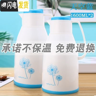三维工匠保温壶家用保温水壶大容量学生宿舍开水暖水瓶小型便携保暖热水瓶 2个天空蓝1600(卧室客厅各一个)