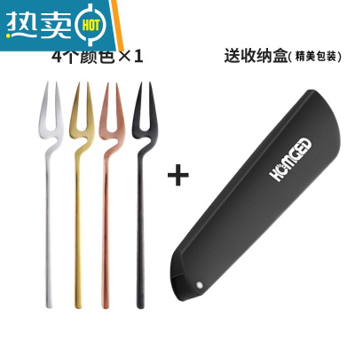 敬平水果叉套装创意可爱304不锈钢小叉子家用月饼插果签水果蛋糕叉具 挂壁水果叉4色各1只 4只装(送收纳盒)