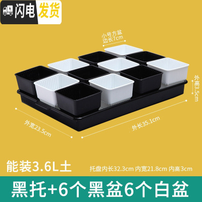 三维工匠美莳多肉控根花盆带托盘大号透气肉肉植物花盆创意多肉塑料花盆器 白托+黑白盆各6个(口径7cm) 中等花盆容器