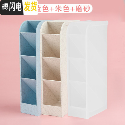 三维工匠笔筒女ins北欧个性创意时尚可爱少女韩国小清新多功能学生桌面粉色大容量多格放笔 三格笔筒5个颜色各1个/7047