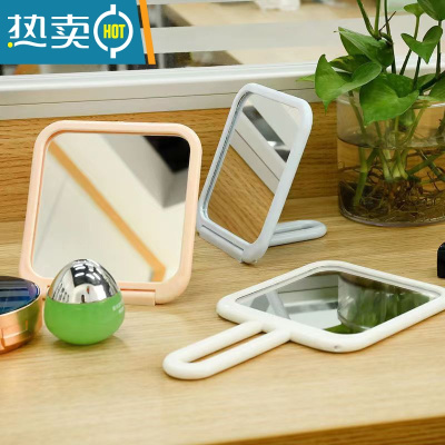 敬平镜子挂式高清折叠手持化妆镜子梳妆镜学生女网红台式便携少女美妆便携式用镜 三个方形送一个挂钩三色各一