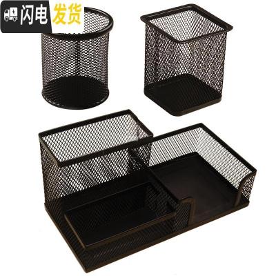 三维工匠多功能大容量笔筒收纳盒办公室用品创意时尚简约个生桌面文具收纳装笔放笔的收纳盒铁艺金属 三格大容量+圆笔筒/各1个