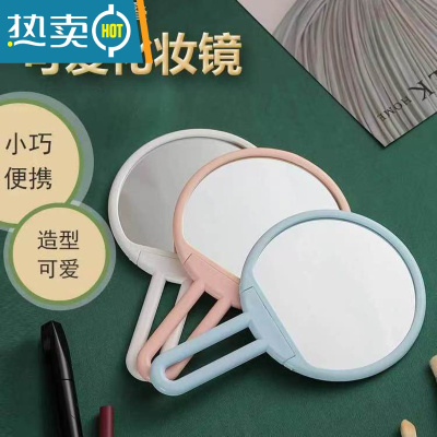 敬平镜子挂式高清折叠手持化妆镜子梳妆镜学生女网红台式便携少女美妆便携式用镜 三个圆形镜子送一个挂钩三色各一