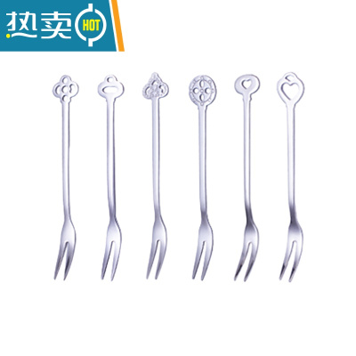 敬平6支装水果叉套装可爱创意小叉子家用欧式水果叉不锈钢签果叉套装 银色A40 6件套牙签
