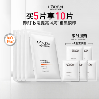 欧莱雅男士美白面膜5片提亮肤色淡化痘印淡斑补水保湿护肤品送男友七夕