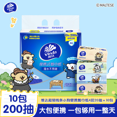 [维达×线条小狗联名]维达超韧便携式餐巾纸4层20抽10包 外出便携实惠装餐巾纸面巾纸卫生纸纸巾
