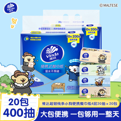 [维达×线条小狗联名]维达超韧便携式餐巾纸4层20抽20包 外出便携实惠装餐巾纸面巾纸卫生纸纸巾