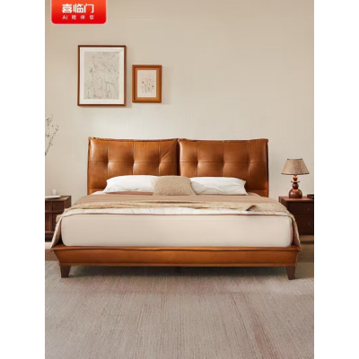 喜临门 - 榛果s 皮床 中古风头层牛皮软包床 双人皮艺大床