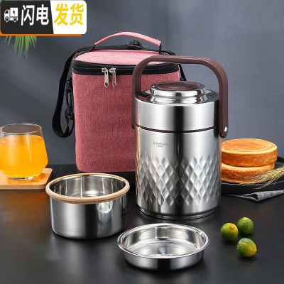 三维工匠304不锈钢保温饭盒桶上班族1人便携12小时超长大容量多层真空提锅 2.0真空提锅+保温背袋