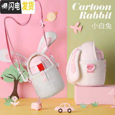 三维工匠可爱儿童保温杯创意卡通吸管壶学生背袋户外保温壶杯子男女生水杯 粉色小兔子