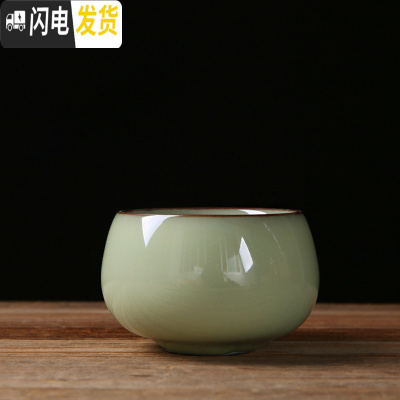 三维工匠 粗陶铁胎官窑茶杯 青瓷开片功夫茶杯陶瓷个性主人品茗单杯 米黄官窑罗汉杯(送布袋)