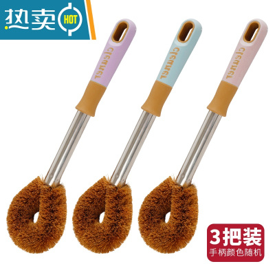敬平长柄椰棕锅刷洗锅刷洗碗刷子家用清洁去污刷锅器厨房用刷 3把装