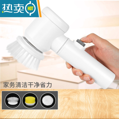 敬平多功能电动清洁刷家用厨房灶台刷锅器洗锅洗碗刷子 [超豪华]硬毛刷*1、百洁布*3 赠挂钩*5