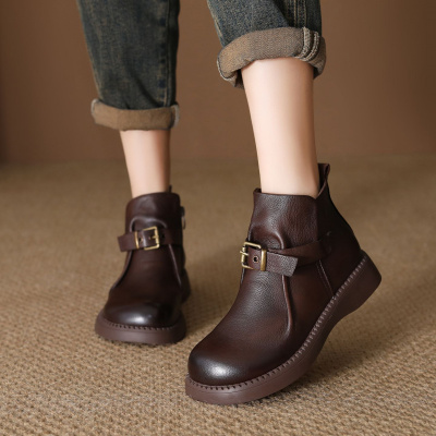 头层牛皮马丁靴女秋冬新款复古英伦风短靴皮带扣真皮软底女靴