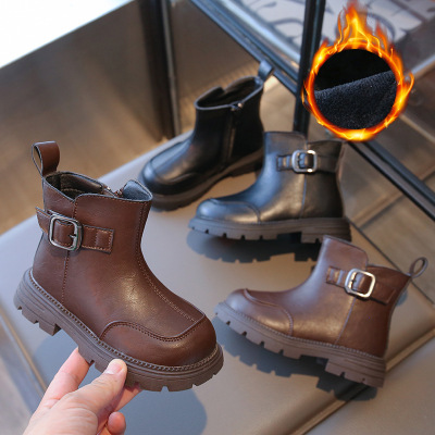 男女童马丁靴冬季新款英伦风加绒保暖棉靴中大童皮带扣短靴潮