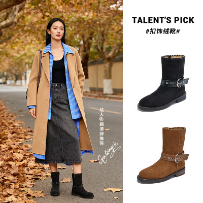 复古皮带扣短靴女冬季新款粗跟美拉德马丁靴休闲百搭瘦瘦女靴