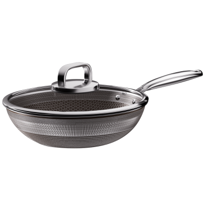 梦创蜂窝不粘锅炒锅家用无涂层不锈钢炒锅燃气灶电磁炉通用炒菜锅