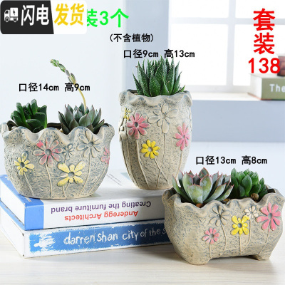 三维工匠 多肉花盆粗陶室内肉肉植物盆栽大口径陶瓷花盆批发 套装138 中等花盆容器
