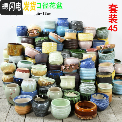 三维工匠 多肉花盆粗陶室内肉肉植物盆栽大口径陶瓷花盆批发 套装45 中等花盆容器