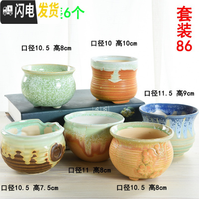 三维工匠 多肉花盆陶瓷粗陶素烧肉肉植物盆栽大口径批发 套装86 中等花盆容器