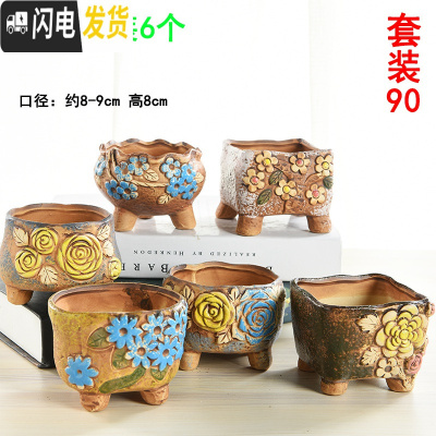三维工匠 多肉花盆陶瓷粗陶素烧肉肉植物盆栽大口径批发 套装90 中等花盆容器
