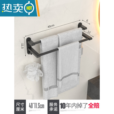 敬平免打孔毛巾架挂杆卫生间挂架浴室毛巾单双杆太空铝浴巾架子置物架 典雅黑双杆40CM浴室置物架