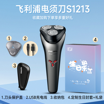 飞利浦电动剃须刀男士胡须刀剃胡子刀送男友生日刮胡电须刀S1213[生日套装+收纳包]