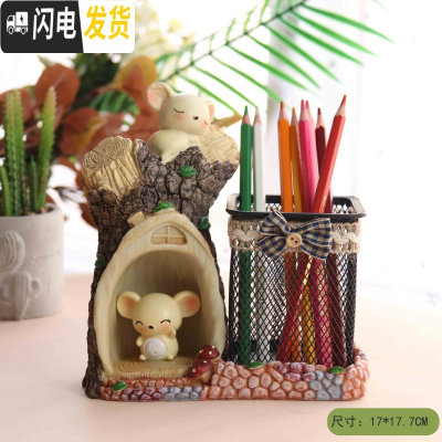三维工匠创意时尚学生桌面摆件可爱卡通收纳儿童个性办公室龙猫笔筒女ins 小萌鼠睡觉款
