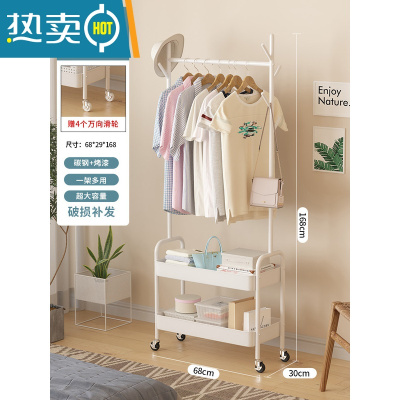 敬平可移动晾衣架落地卧室衣帽架一体脏衣篮子简易收纳置物睡觉放衣服 白色-双层[拱门+树杈]