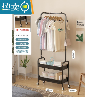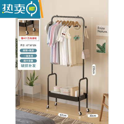 敬平可移动晾衣架落地卧室衣帽架一体脏衣篮子简易收纳置物睡觉放衣服 黑色-单层[U型拱门]
