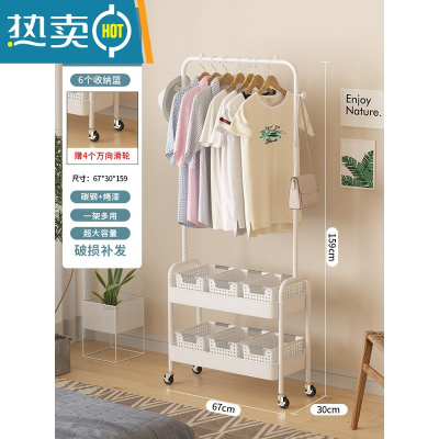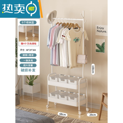 敬平可移动晾衣架落地卧室衣帽架一体脏衣篮子简易收纳置物睡觉放衣服 收纳盒款-白色-双层[U型拱门]