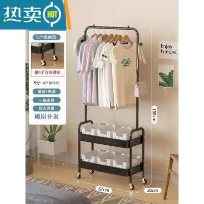 敬平可移动晾衣架落地卧室衣帽架一体脏衣篮子简易收纳置物睡觉放衣服 收纳盒款-黑色-双层[U型拱门]