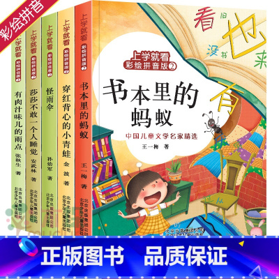 [正版]上学就看彩绘拼音版2 5册装 书本里的蚂蚁穿红背心的小青蛙有肉汁味儿的雨点莎莎不敢一个人睡觉怪雨伞 一年级至二
