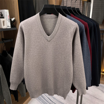 绵柔时尚V领羊毛衫简约鸡心领打底毛衣中年男士宽松加厚羊毛衫