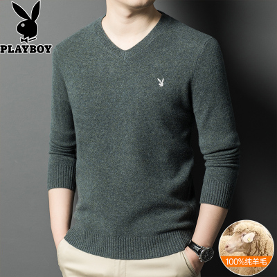 花花公子2024秋冬纯羊毛衫男V领中年爸爸毛衣鸡心领针织打底衫