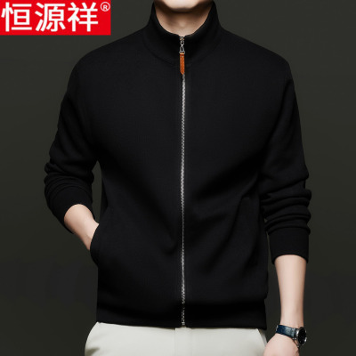 恒源祥开衫男立领休闲运动外穿小外套中年纯色宽松长袖拉炼卫衣男