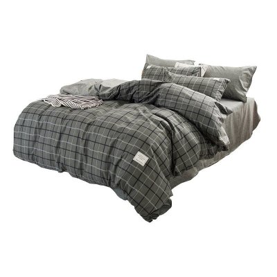 美帮汇灰色床单格子四件套 北欧风床上大学生寝室全套装 单人宿舍六件套