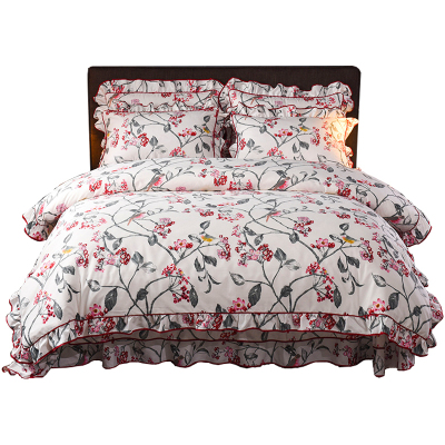 美帮汇中式四件套田园 小碎花被套北欧风 欧式花边床单荷叶边一米八床女