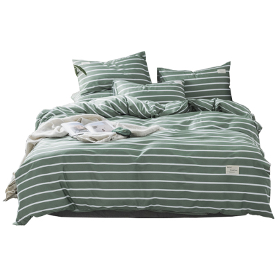 美帮汇北欧风格床上四件套简约条纹被套全棉全棉200.230床单三件套绿