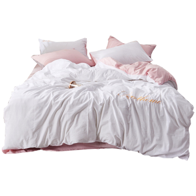 美帮汇小香风四件套全棉全棉被套北欧 少女水洗棉床单三件套 粉