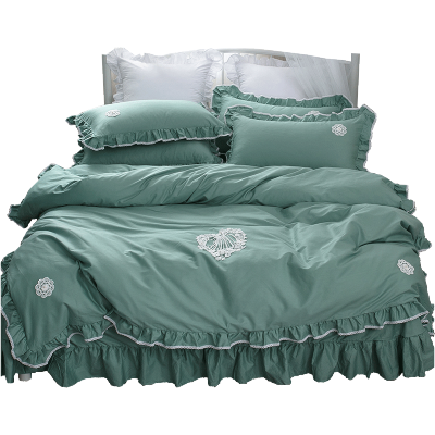 美帮汇床单四件套北欧 少女公主款床上被套少女床裙带花边被罩粉