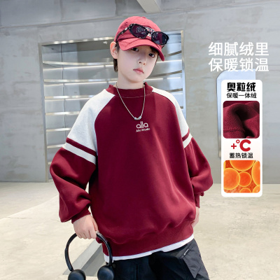 儿童装男童冬季一体加绒卫衣新款初中生大童秋冬款加厚上衣潮